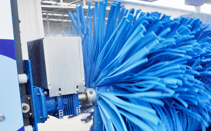 進口意大利塑玻絲輪刷,根據(jù)光電開關(guān)感應(yīng)判斷車身位置,輪刷啟動至輪轂位置,開始清洗,正反旋轉(zhuǎn)刷洗輪轂,電腦洗車機全程電腦全自動控制輪刷伸縮。